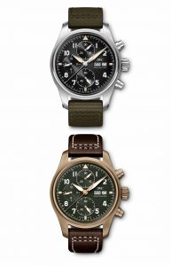 ベルト素材:(上)オリーブグリーンの布製(ほかにブラウンのカーフスキンタイプ、Ref.IW387903あり)、(下)ブラウンのカーフスキン