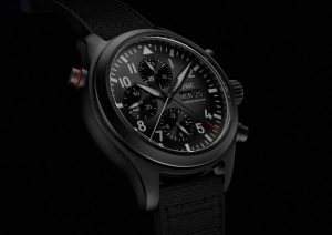 パイロット・ウォッチコレクションに属するもうひとつのシリーズ“トップガン”にもセラミックや特殊素材を採用した四つの新作が同時に発表された。なかでも注目なのはIWCが開発したという新素材“セラタニウム”を使用した“パイロット・ウォッチ・ダブルクロノグラフ・トップガン・セラタニウム”である。