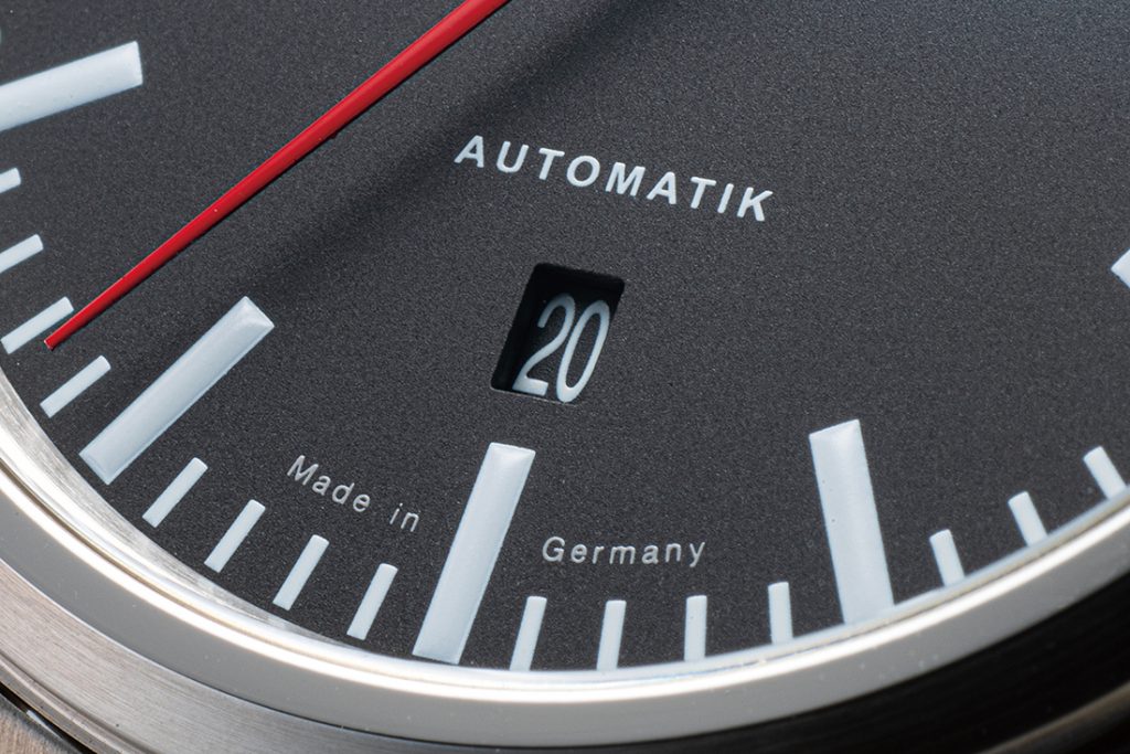 【デイト表示】耐磁時計のなかには構造上、デイト表示を備えられないモデルもあるが、ジンの場合、問題なし。836でも6時位置にデイト表示を備える。