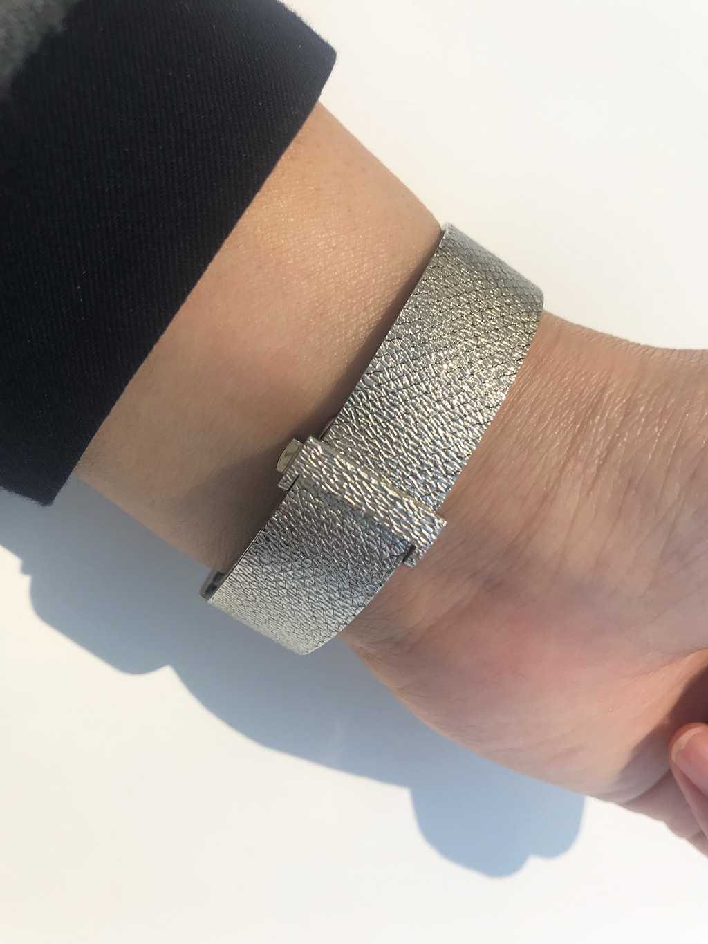 金属とは思えないようなしなやかな質感であるため、最初に見た時はどう作られているかがわからなかったのだが、実はこれ、交互に編み込まれたメッシュブレスを作ってから、プレスするという手間をかけて作られたもの。