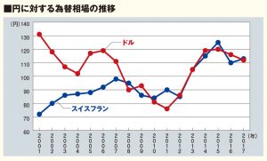 もちろんスイス時計産業も1990年代後半からの時計ブームに乗って、右肩上がりに売り上げを伸ばしていた。特に2000年代に入るとスイスフラン高が加速(グラフ1参照)していたことも手伝って、それが顕著に現れているのがわかる。もちろん、中国を筆頭とする新興国の台頭も、背景にあったことはいうまでもない。