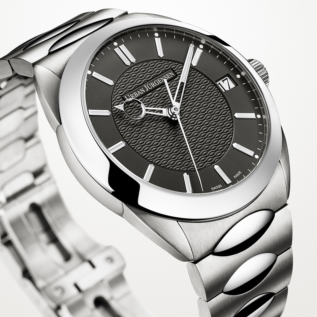 古典的なクラシックウオッチを主に手掛けてきたウルバン・ヤーゲンセンが、従来のイメージを覆すスポーティなコレクションとして19年に発表したワン・コレクション。独自のステンレススチールブレスを採用した初のモデルであり、防水性能はスポーツモデルにふさわしい120m防水を確保している。