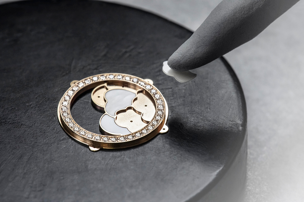 先ほど本モデルの特徴として“オフセンターが採用されていること”を挙げたが、本作のもうひとつの特徴が“オートクチュールとオルロジェリーの融合”というコンセプトだ。