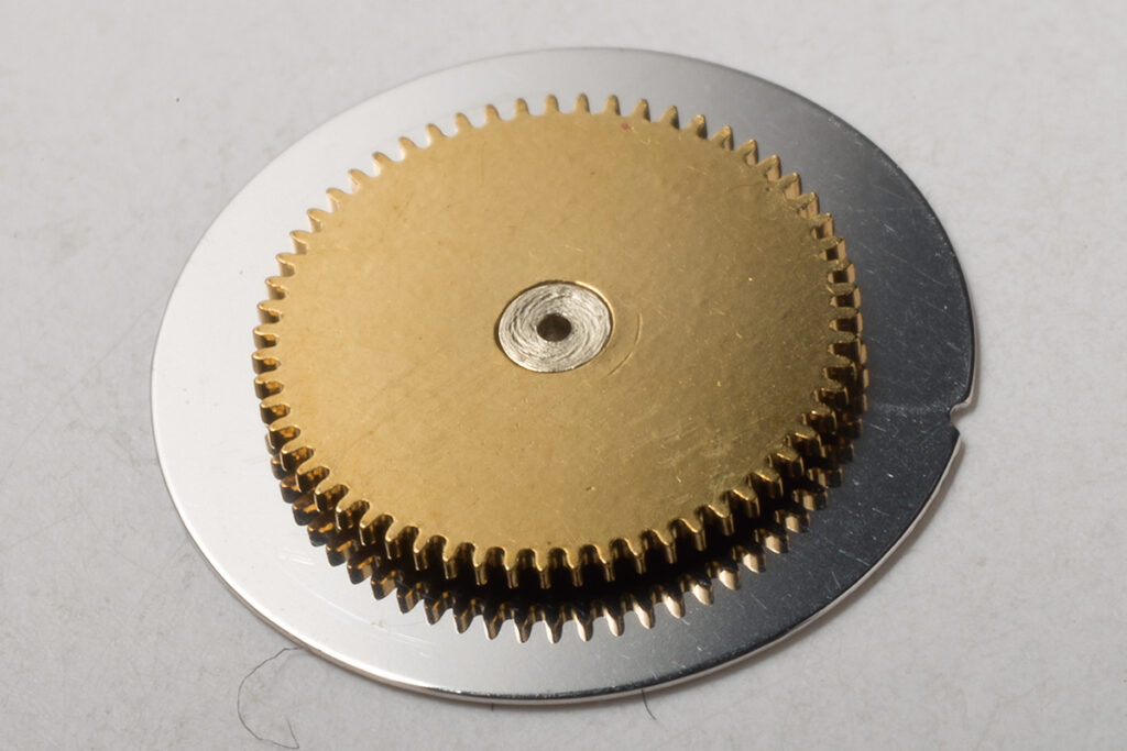 そこで一般的なムーンフェイズ機構では、ディスク1周で2朔望月(さくぼうげつ)を表示することが多い。この場合、29.5の倍となる59歯の歯車を用いることで、1朔望月の誤差を約44分にまで縮めているのだ。59歯だと誤差は約2年7カ月で1日分となる計算なので精度としては十分優秀と言える。