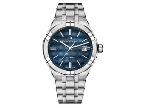 モーリス・ラクロアを代表するモデルとして1990年代に人気を博した“カリプソ”の復刻版として、2016年に登場した“アイコン”の自動巻きムーヴメント搭載モデル。ケースとブレスレットを一体化したシームレスな防水ケース、6つのアームをあしらったベゼルなど、オリジナルのDNAを継承したアイコニックなデザインが個性を主張する。ペルラージュ仕上げとコリマソン仕上げを施した受け板、垂直のコート・ド・ジュネーブ装飾を施したサンブラッシュ仕上げのローターなど、この価格帯では珍しい丁寧な装飾が施されているムーヴメントも魅力的だ。