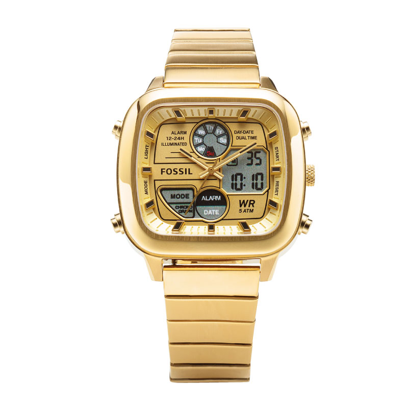 針を使った表示とは別に、クロノグラフやデュアルタイム機能を表示するデジタルディスプレイを備えた混合モデル。時間の経過を感覚的に把握できるアナログ表示の利点と正確な数値を表示するデジタル表示の利点を兼ね備えていることから、スポーツモデルやコネクテッドウオッチなどに採用されることも多い。