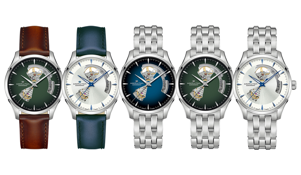 (左から)Ref.H32675560。Ref.H32675650。Ref.H32675140。Ref.H32675160。Ref.H32675150。ともにSS(40mm径)。5気圧防水。自動巻き(Cal.H-10)。12万9800円(革ベルト)、13万8600円(ブレスレット)