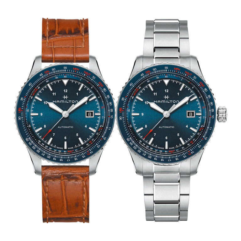 (左)Ref.H76645540。14万3000円。(右)Ref.H76645 140。15万2900円。ともにSS(42mm径)。10気圧防水。自動巻き(Cal.H-10)