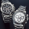 白と黒の文字盤のタキシードは文字通り、礼服のひとつであるタキシードからインスパイアされている。スタイリッシュで洗練された雰囲気を醸し出す微妙なダーク グレーのステッチが施されたブラックのエプソン レザー ベルトがモノトーンの文字盤と絶妙なマッチングを見せている。販売価格は985米ドル(約13万円)。