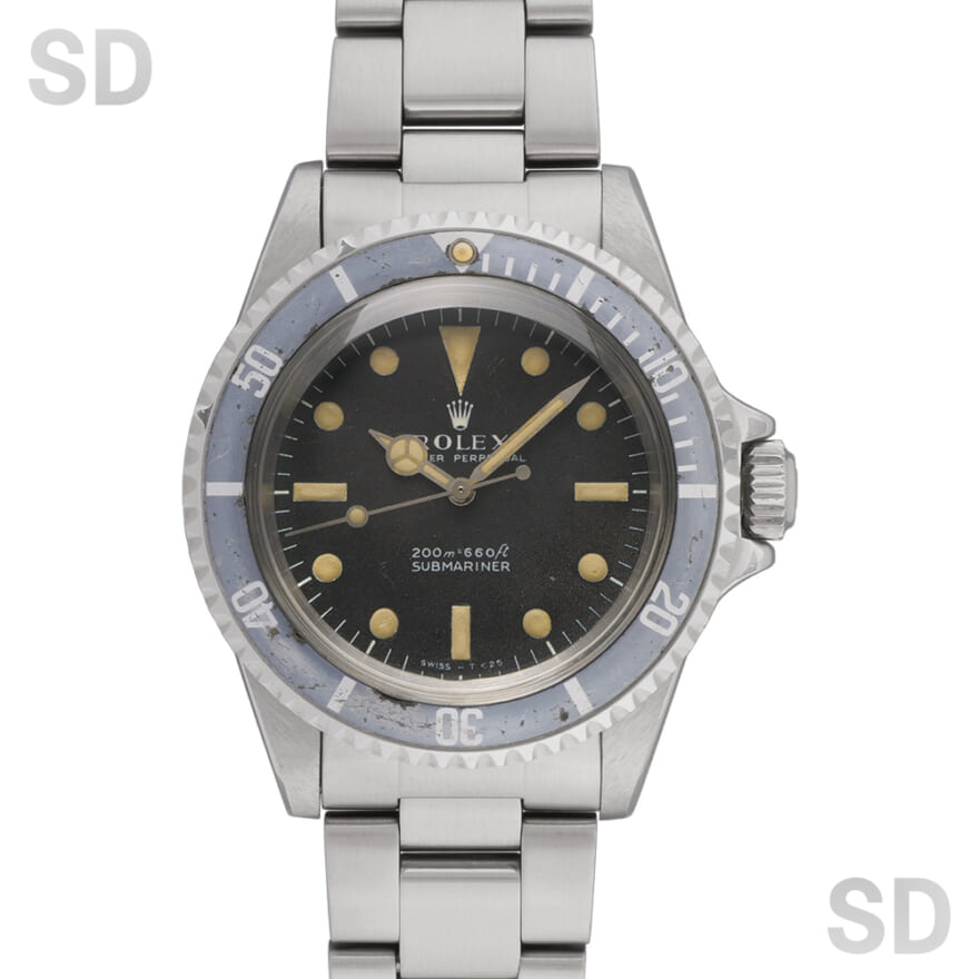 丸みあるプラスチック風防に、柔らかみのあるベゼルが特徴的で、数多くのバリエーションが存在するサブマリーナーのなかでも、どこか愛嬌のある顔立ちが特徴的だ。特に、クリーム色の夜光と、経年変化によってブルーグレーに退色したフェードベゼルがアンティークらしさを強調するとともに、ダイバーズウオッチ特有のいかつさを和らげている。