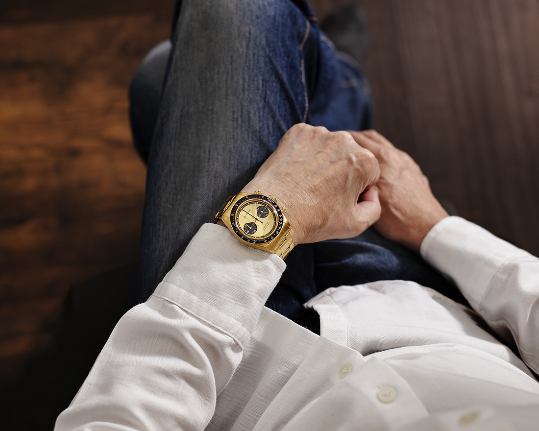 かつてデイトナ・ポールニューマンのゴールドモデルに存在したと言われるレモンダイアル仕様で、世界的な有名オークションハウスでも3本しか現存が確認されていないと言われる伝説的なモデルに着想を得て製作したモデルだ。