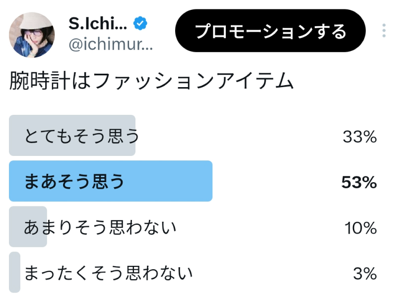 上画像は筆者のXアカウントの投票機能で行ったアンケート。“腕時計はファッションアイテムか?”という問いに対し、肯定的な回答が実に86%もの票を集めた。