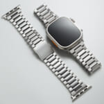 ストラップは先端部分にまで、ブレスレットのコマを思わせる立体的な造形になっている |
