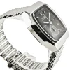 ゴールドカラーの文字盤は、スタンピング工程による細かな粒子感が際立つデザインに。アプライドインデックスやドーフィン針との組み合わせにより時刻表示の視認性も確保、6時位置のスモールセコンド表示が長方形ケースとの対比で情報を整理してくれる。