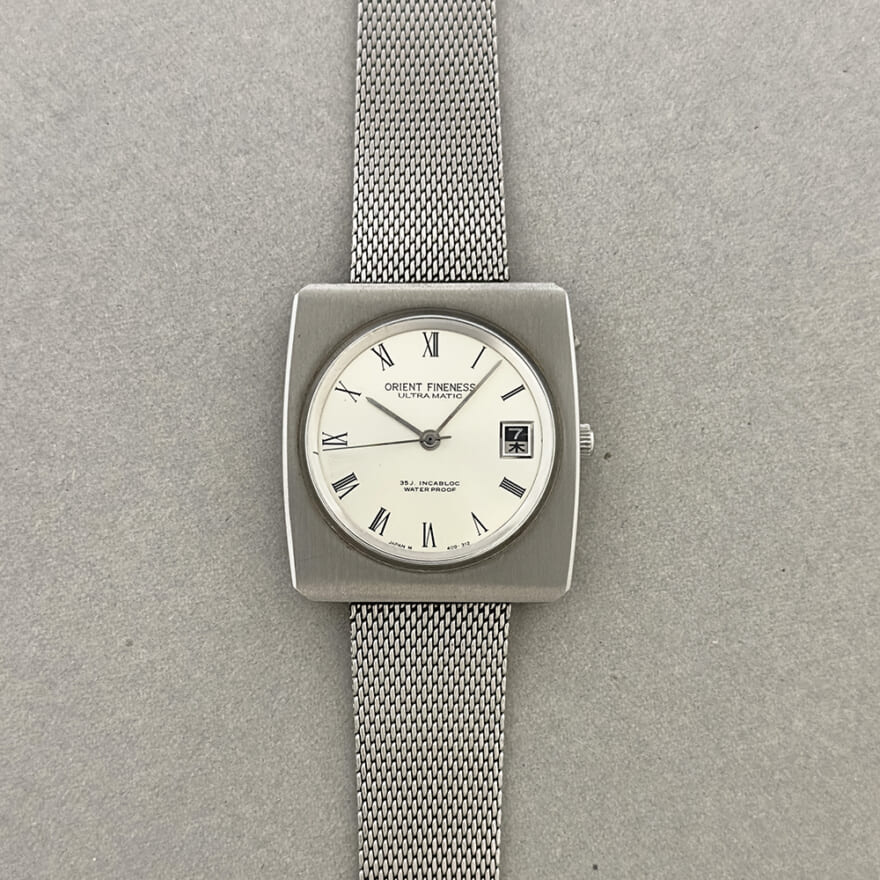 【写真の時計】オリエント ファイネス ウルトラマチック。SS(34mm× 33mm)。自動巻き(Cal.3991)。1960年代製。22万円。取り扱い店/BQ