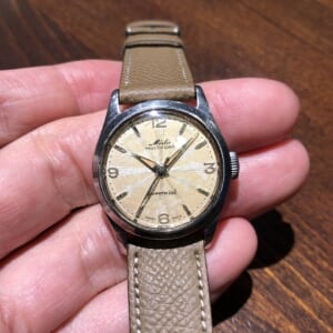 HOME > LowBEAT magazine > 最新入荷情報 > LowBEAT magazine 最新入荷情報 【同型機種を愛用する編集部員が徹底解説!】アンティークの魅力が凝縮された1950年代製の”ミドー マルチフォート“をクローズアップ 2025年11月27日 【写真の時計】ミドー マルチフォート パワーウインド。SS(28.5mm径)。自動巻き(Cal.917P)。1950年代製。8万8000円。取り扱い店/プライベートアイズ 記事に戻る 【LowBEAT Marketplaceでほかのミドーの時計を探す】 < 1 2> Twitter Share Pocket Hatena LINE URLコピー -LowBEAT magazine, 最新入荷情報