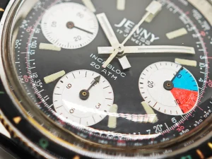 (写真の時計)ジェニー カリビアン ヨッティングクロノグラフ。Ref.2003。SS(39mm径)。手巻き(Cal.バルジュー72)。1960年代製。52万8000円。取り扱い店/WatchTender銀座