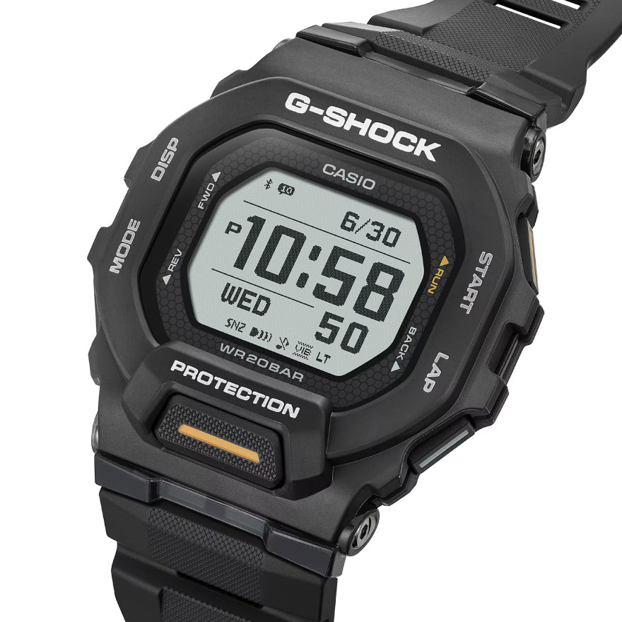 初代G-SHOCKから受け継がれたスクエアフォルムに、加速度センサー、距離計測機能、スマートフォン連携機能を搭載している。