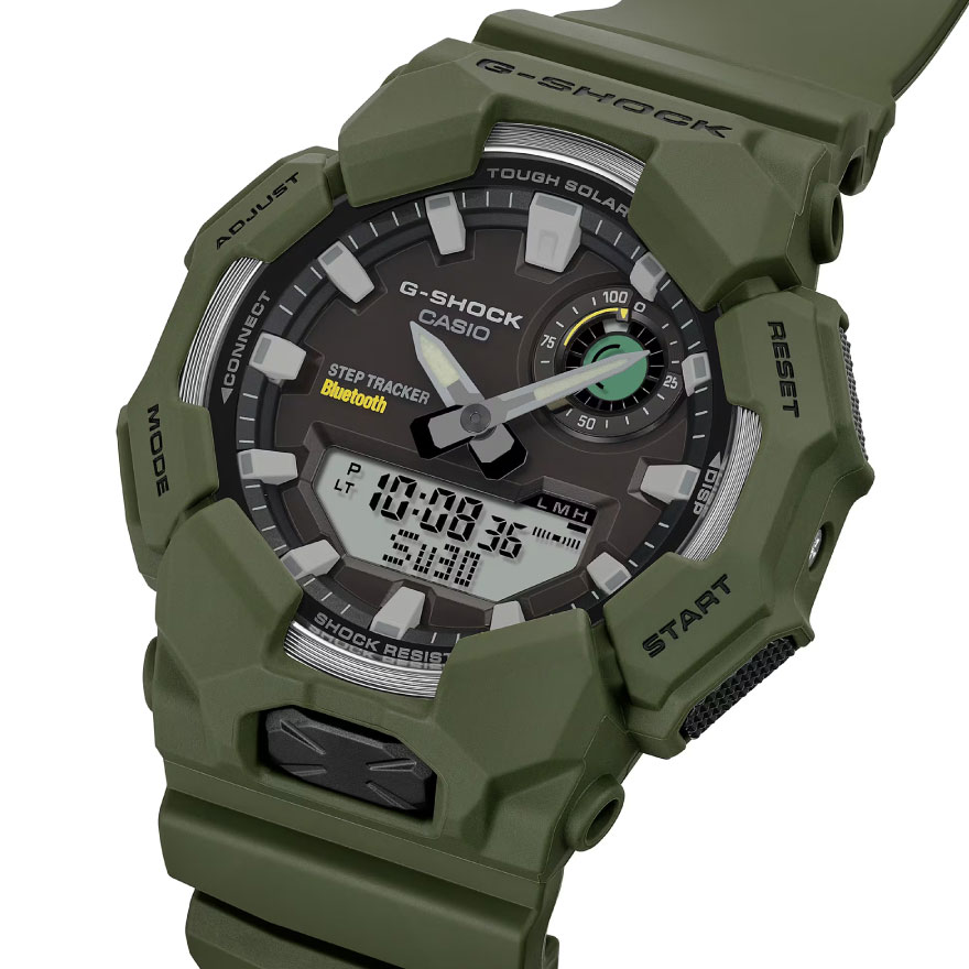無骨なラギッドスタイルのアナデジコンビシリーズ“GA-B010”より、ソーラー発電のみでライフログを計測できるBluetooth通信機能搭載のビッグケースモデル。