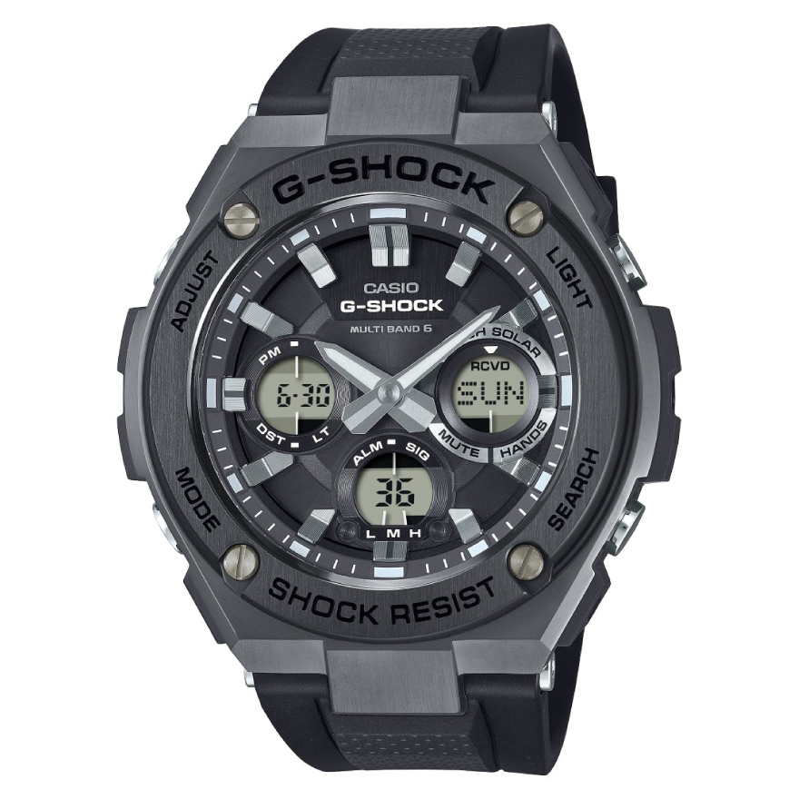 メタルと樹脂の異素材を融合したデザイン性が魅力の“G-STEEL”より、ブラックをテーマにした精悍な印象のモデル。