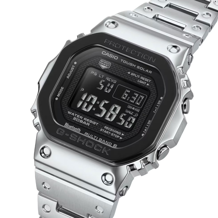 G-SHOCK初号機“DW-5000C”の象徴であるスクエアデザインをフルメタル化し、スマートフォンリンクをはじめとした先進機能を搭載した人気モデル。