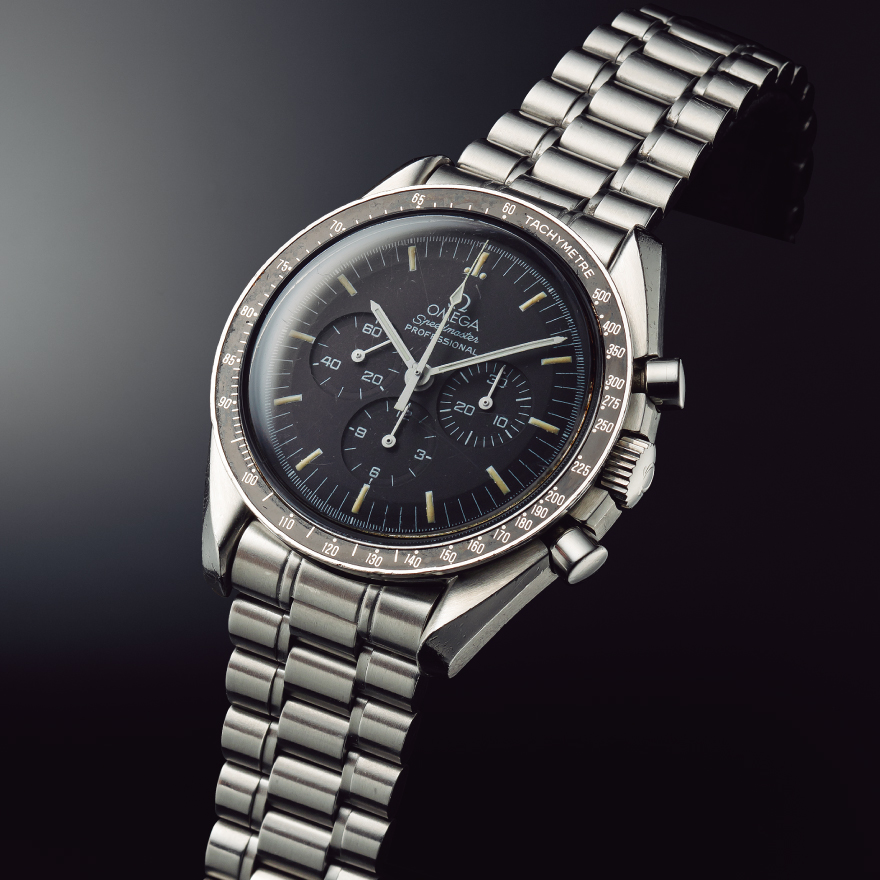 言わずと知れた傑作時計、OMEGA(オメガ)のスピードマスター。1969年に人類初の月面着陸という偉業達成の際に携行されたほか、6度にわたる月面着陸プロジェクトに携帯され、“ムーンウオッチ”の称号を得た、伝説的なクロノグラフだ。