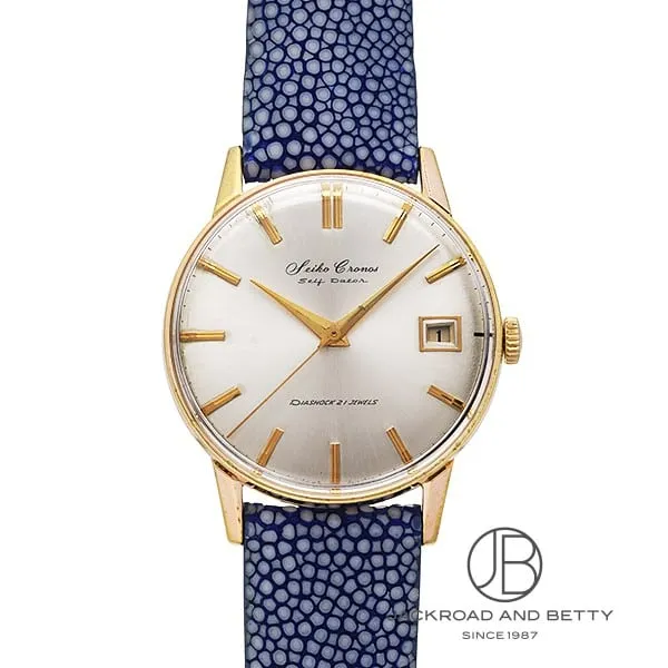 今回紹介するのは、東京・亀戸に工場を構えていた第二精工舎が、1958年に初めて独自に設計を行った男性用中3針の“セイコー クロノス”の派生機、セイコー クロノス セルフデーターだ。デイト機能付きの本個体は1961年頃から製造が開始されたシリーズで、3時位置のデイト窓と金張りのスリムなケースが特徴的だ。