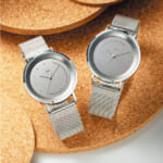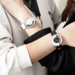重ねると点が線に、円(縁)になるというコンセプトのペアウオッチ。同ブランド史上最薄(ケース厚8mm)のソーラーウオッチとして、実用性も抜群だ。