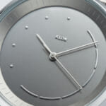 周りの情景を映し出すミラー文字盤採用モデル。文字盤の数字を前半と後半で分けることにより、二つの時計が交互に時を刻むというコンセプトを表現している。