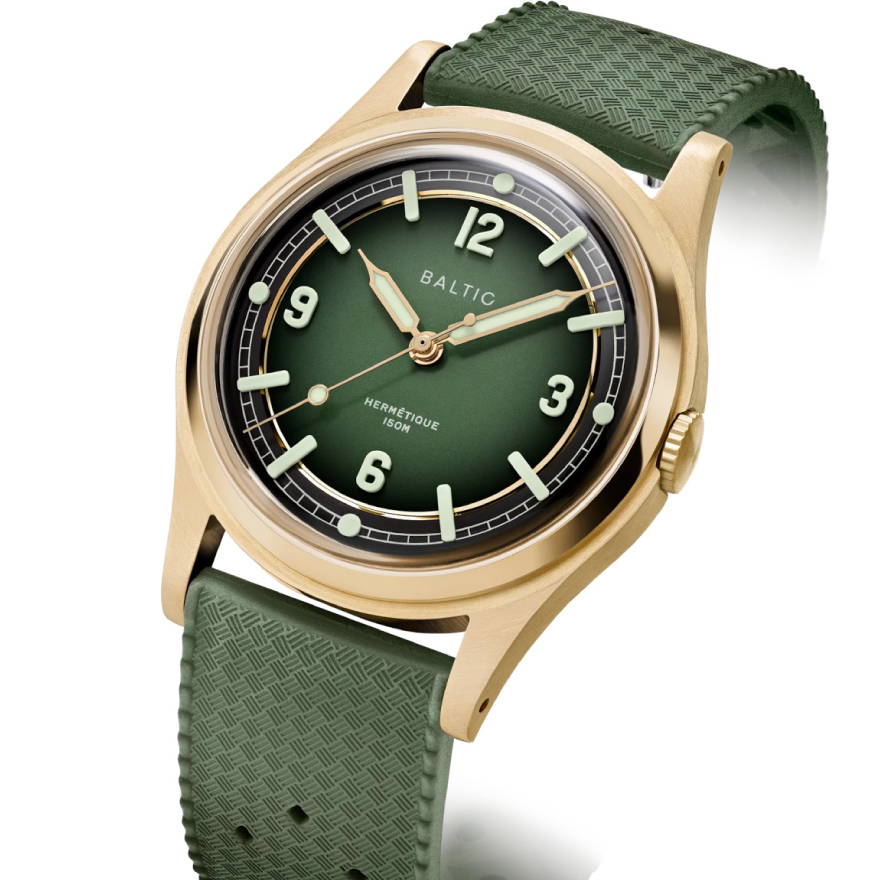フランスの時計ブランド、BALTIC(バルチック)のフィールドウオッチ“エルメティックツアラー”のブロンズモデル。