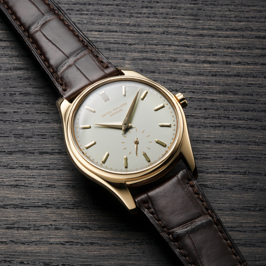 オールドパテックを代表する人気モデルのひとつで、スイスの高級宝飾店ギュブランとのダブルネーム仕様となった自動巻きRef.2526。希少なエナメル文字盤、PPリューズを備えており、気品あふれる雰囲気が魅力。また本個体は過去の修理明細とアーカイブも付属しており、安心感も非常に高い。