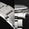 本作はケースからブレスレット、文字盤、針に至るまですべて316Lステンレススチール製のミラーポリッシュで仕上げられた高い統一感が特徴的な1本。ドーム型サファイアクリスタルを組み合わせることで透明度と強度を確保し、雪原を思わせる光の反射を外装全体で表現する。